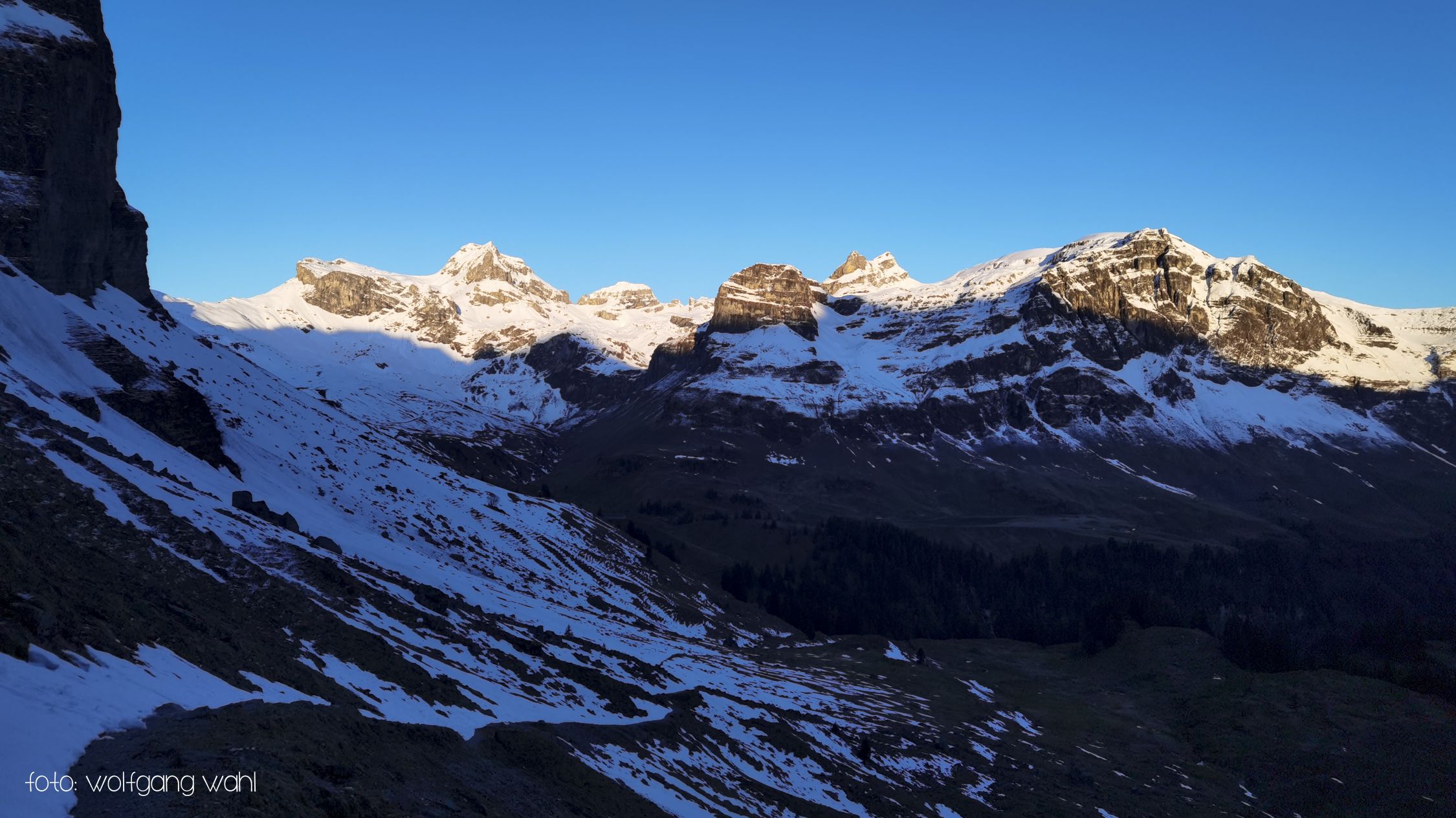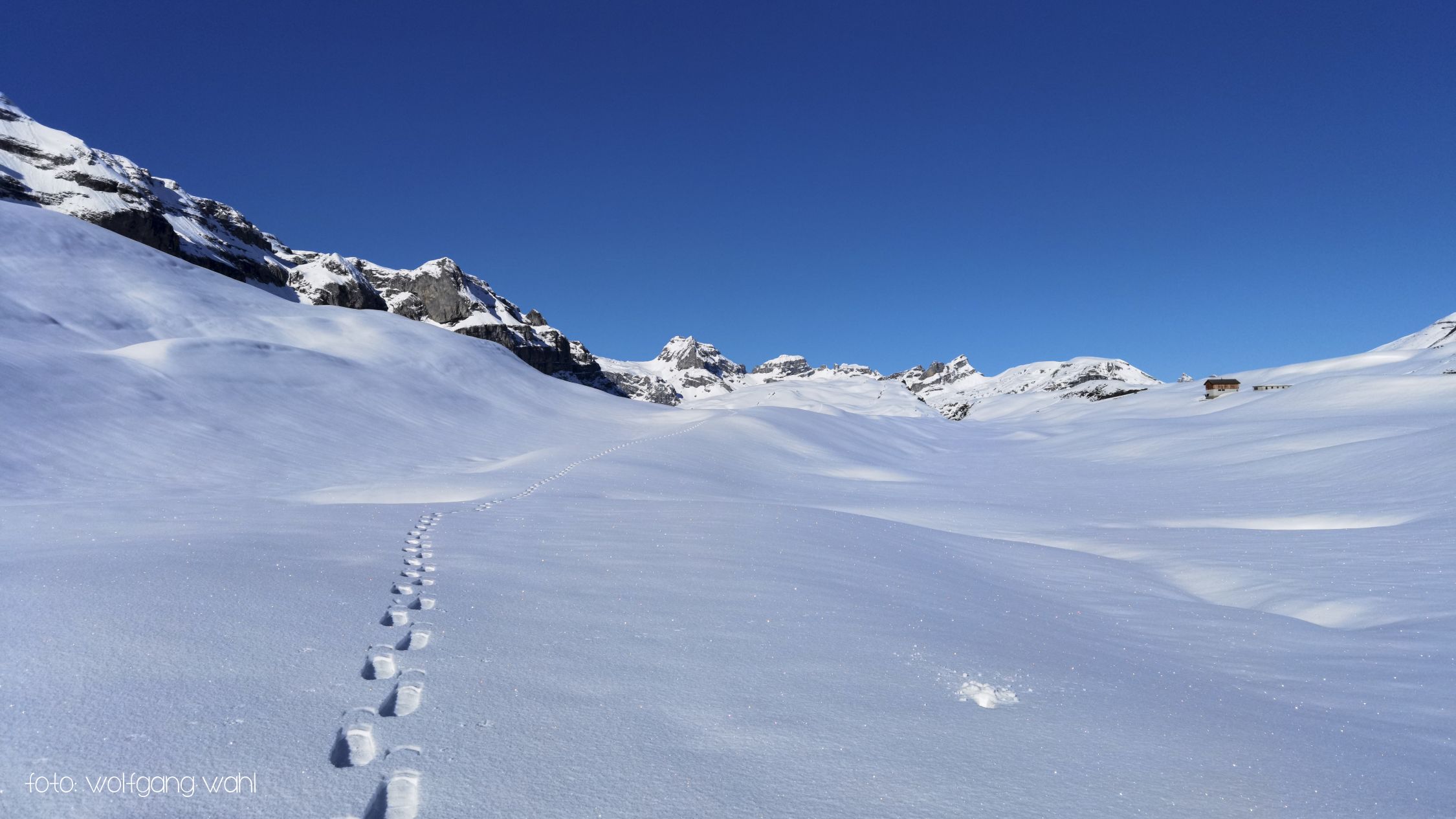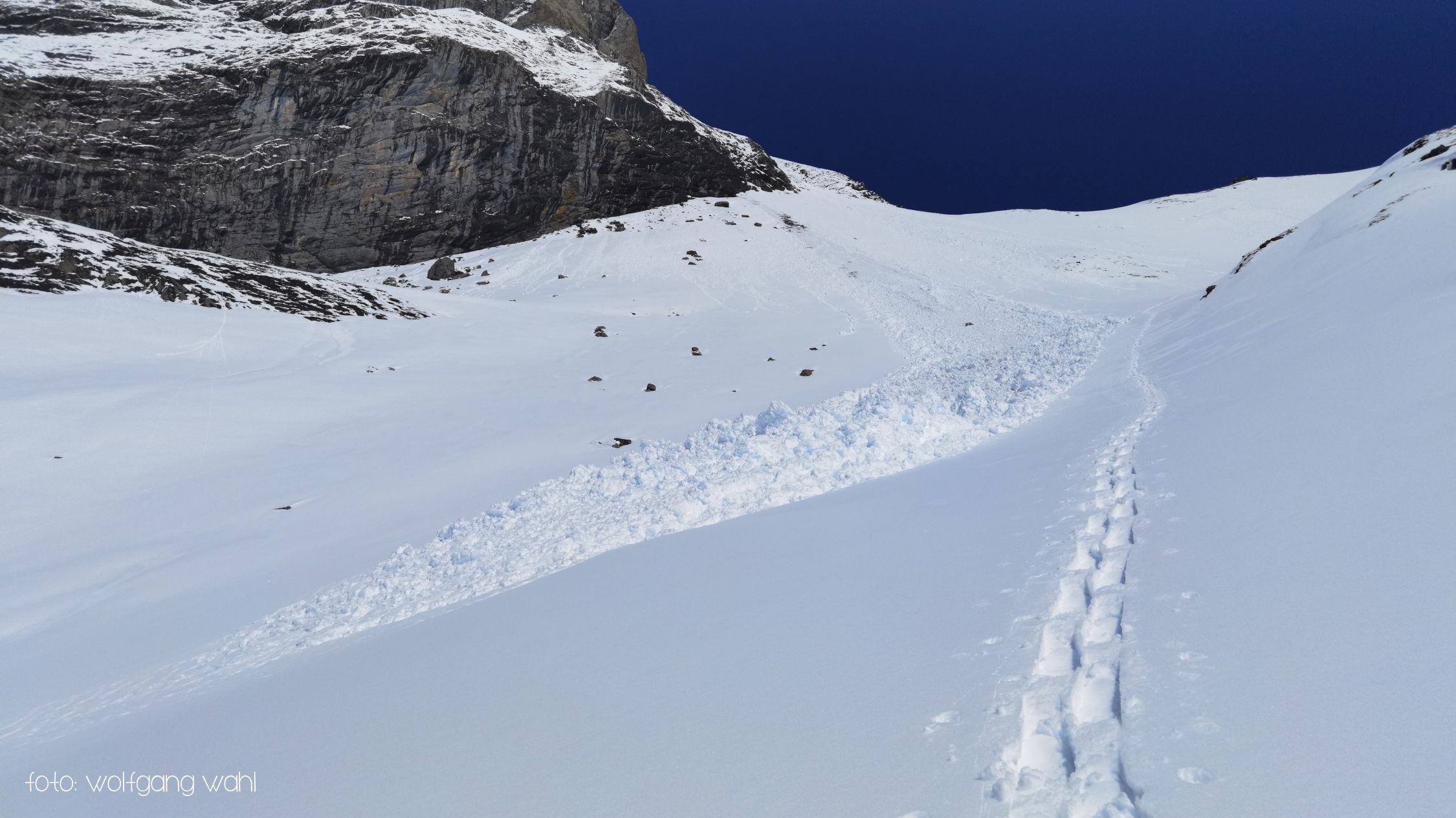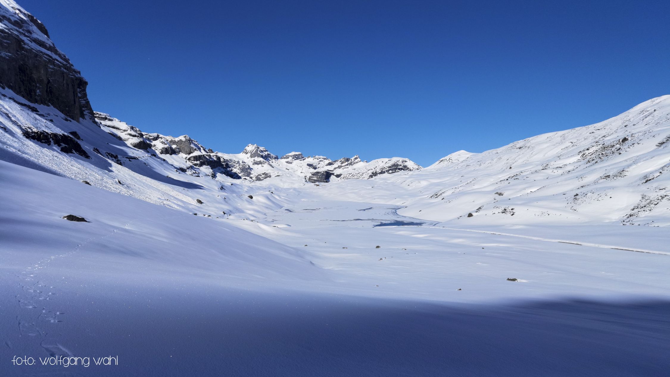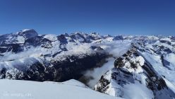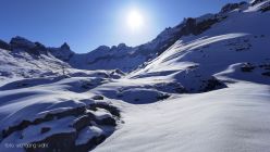 Absolute Hammer-Tour bei perfektem Wetter! Weit und breit keine Menschenseele und auch keine Spuren zu sehen… den ganzen Tag neue Spuren im Neuschnee ziehen. Beeindruckend waren die ständigen Lawinenabgänge auf der Süd- und Südostseite des Höch Turen, jedoch in sicherem Abstand zu meiner Route.