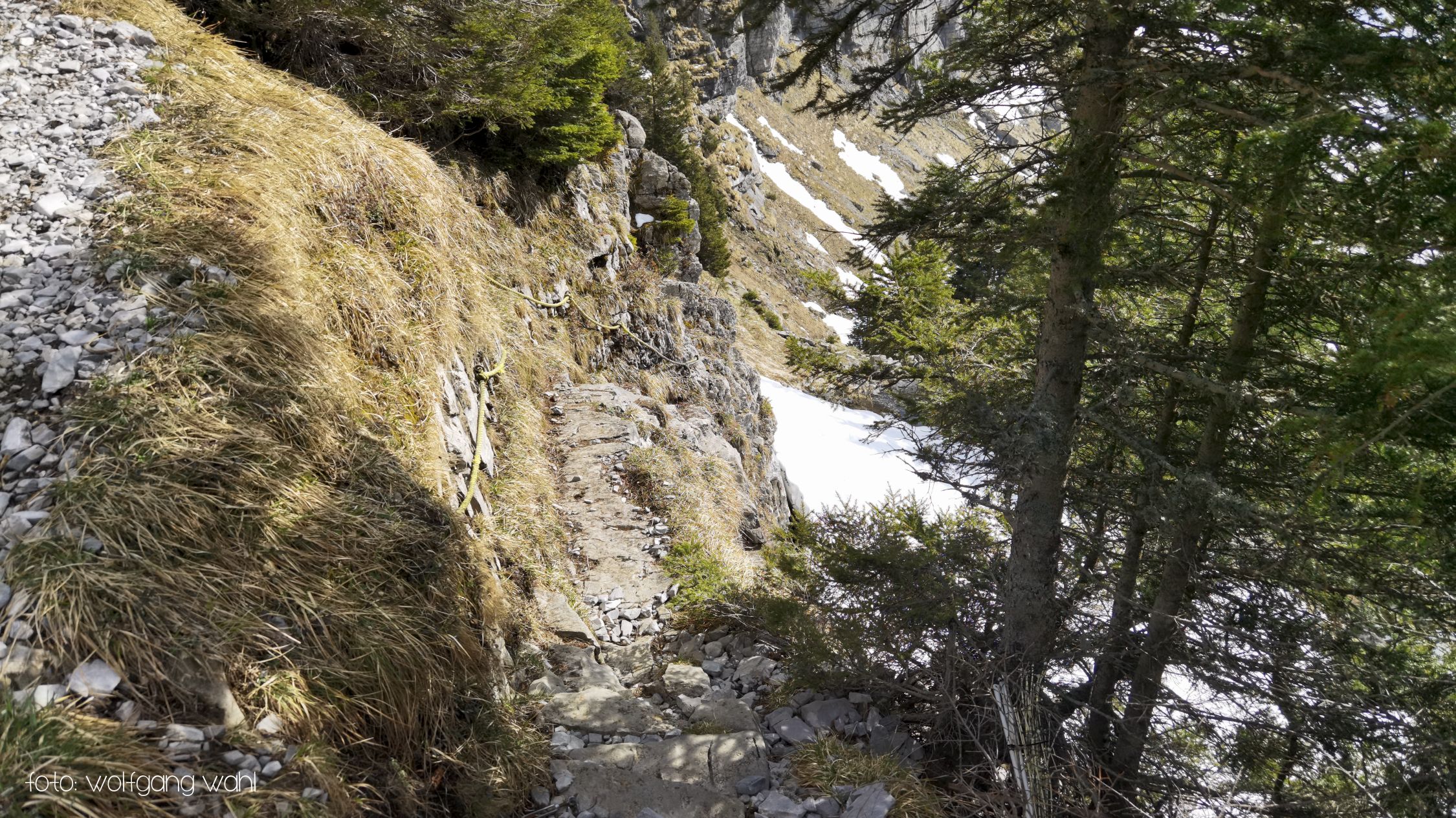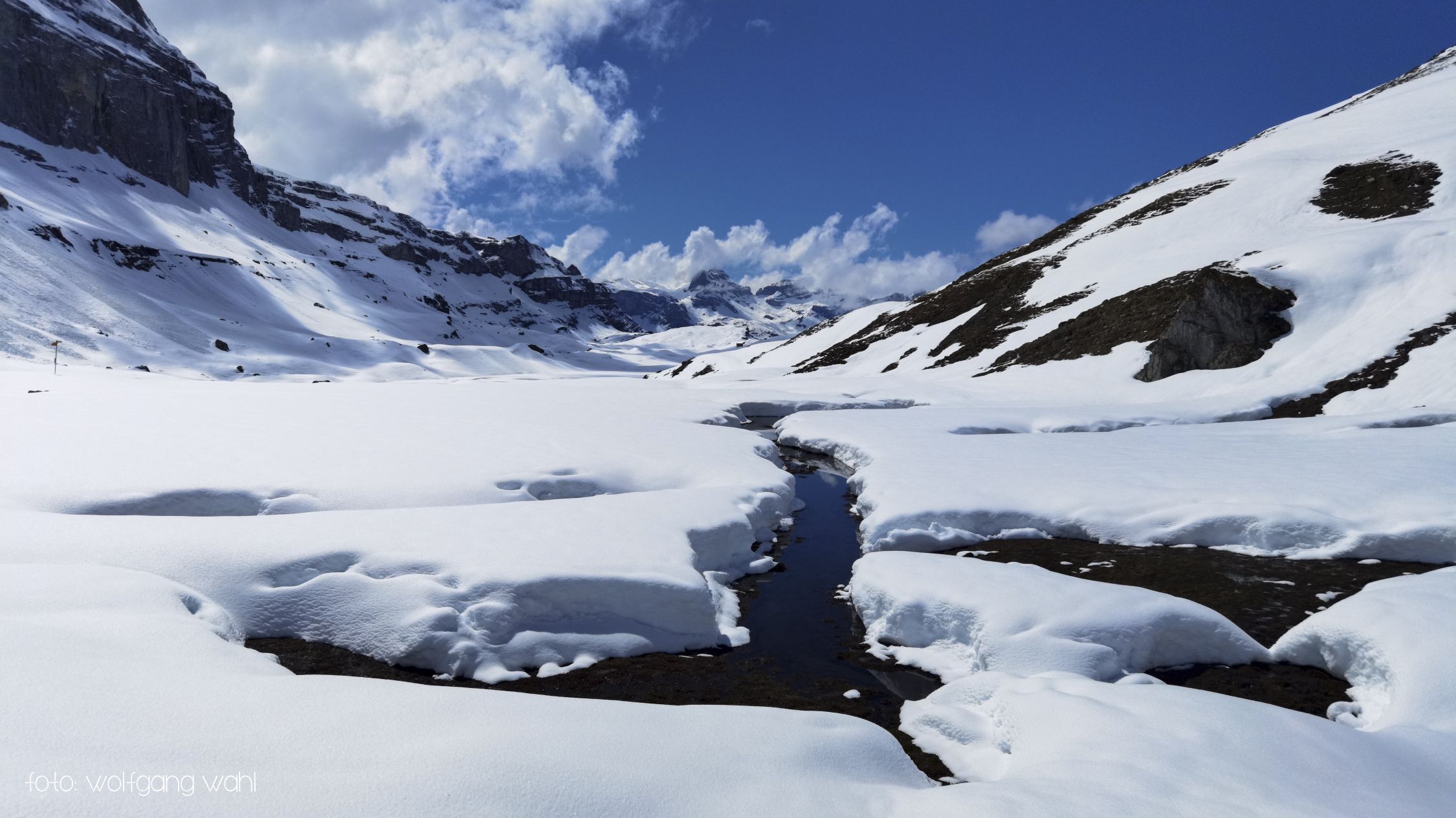 Vom Parkplatz der Luftseilbahn Glattalp in Sahli 1’147m bis etwa 1’500m ist der Weg früh morgens trocken und teils gefroren. Ab etwa 1’750m ist die Schneedecke mit einem Bruchharschdeckel und ein paar cm Neuschnee darüber gut zu gehen bis etwa 2’100m. Entlang der Seeplanggen, der Tieralpeli und am Höch Turen gab es einige grössere Lawinenabgänge, welche jedoch bereits tags zuvor abgegangen sind. Im Aufstieg in der Mulde zum Grat geht man teils auf einem Bruchharschdeckel mit Pulver darunter, aber auch oft auf festem, hartem Schnee. Der Grat zum Gipfel 2’716m ist mehrheitlich abgeblasen mit einigen wenigen Tiefschneefeldern, die Kette ist schneefrei und gut greifbar, die Wegmarkierungen sind gut erkennbar. Im Abstieg wird der Schnee ab 2’500m zunehmend nass bis Sulz auf der Glattalp, ist aber vorallem in Steilstücken angenehm und gut zu gehen mit Schneeschuhen. Inzwischen hat die Sonne bereits einiges an Schnee geschmolzen im Abstieg nach Sahli, sodass der Weg nicht mehr durchgehend mit Schneeschuhen begehbar war. Ab 1’500m gab es nur noch vereinzelte Schneefelder und der Weg zurück zum Parkplatz war teils nass und rutschig von der Schneeschmelze, aber grossteils trocken.