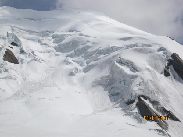 Gletscherabbruch in der Serac-Zone in der Nähe der Aufstiegsroute.