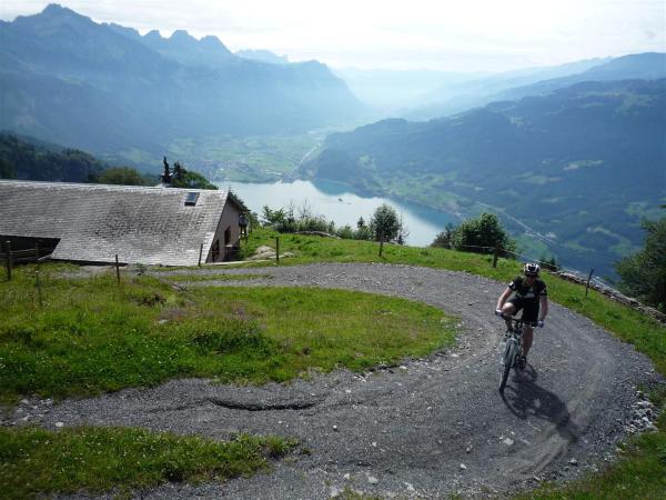 Super schöne Biketour hoch über dem Walensee mit traumhaftem Panorama. Absolut empfehlenswert! Kein Problem und nur wenige Stellen ausgesetzt. Achtung ab Schrina Bikeverbot, jedoch begegneten wir 5 Wanderer bis nach Laubenegg, also kein Problem.