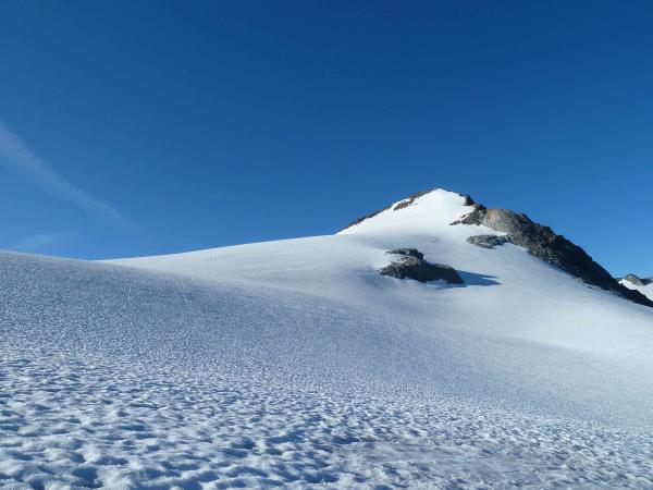 Sehr gute Verhältnisse. Weg bis zum Gletscher fast schneefrei. Steilhang gut mit Steigeisen zu begehen, Gletscher zu. Man kommt über den Nordhang ziemlich weit hoch und betritt erst spät den Grat. Über den schneefreien Grat zum Gipfel mit neuem Kreuz.