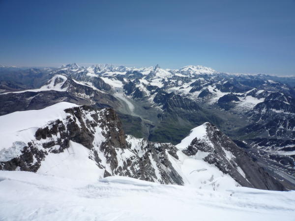 Ich hatte gehofft, die NW-Flanke des Combin de Valsorey fahren zu können, das Teil war aber schon blank. Daher Aufstieg und Abfahrt über das Couloir du Gardien. Im Couloir du Gardien herrschten ausgezeichnete Bedingungen für Aufstieg und Abfahrt. Der Hang fing um 12Uhr15 an aufzusulzen und war durchwegs hervorragend zu fahren, oben sogar noch Pulverreste, unten raus z.T. wenig Schnee auf Eis, aber nicht störend. Der Gipfelhang des Combin de Grafeneire war hart, aber griffig und gut zu fahren.