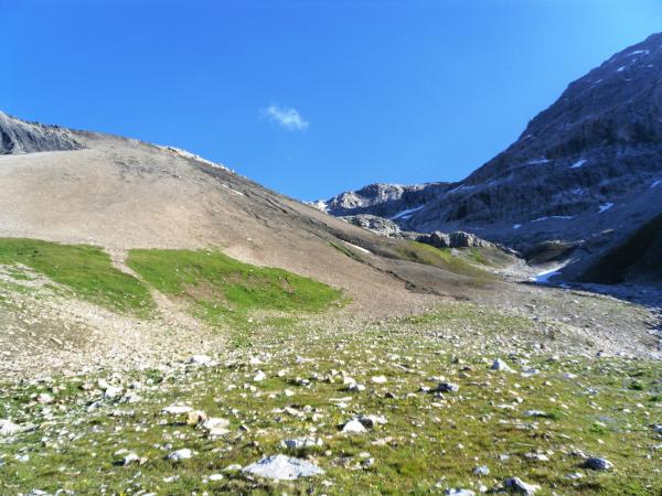 Die Schneefelder können umgangen werden, oder früh starten damit der Schnee noch trägt.