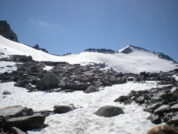Tolle Verhältnisse und gute Wegmarkierungen (Steinmannli) und Spur auf dem Gletscher. Wenig Spalten gut ersichtlich.