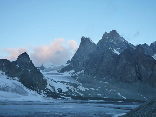 Abstieg: 1/2Std. für die Steilflanke, +3/4Std. bis ins Gletscherbecken runter, +3/4Std. hoch zum Col de l'Evêque, +2Std. bis zur Hütte inkl. Gegenanstieg (gesamt ca. 4,5Std.)