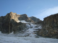 Der Firn im Aufstieg zum Sporneinstieg schwindet zusehends, ansonsten bleiben sie gut. Nach Schneefall ebenfalls sehr schnell wieder gut.