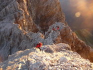 Wir nutzten das kurze Schönwetterfenster optimal aus. Am Abend zuvor hat's bei der Hütte noch wie aus Kübeln geschüttet, morgens um fünf klarstes Wetter bei Vollmond, zwischen neun und zehn Uhr hat's auf dem Abstieg zugezogen. Kurz nach Ankunft in der Hütte kam der Regen wieder, diesmal jedoch in abgeschwächter Form, so dass wir auch trockenen Fusses den Abstieg nach Sulden vollbrachten.