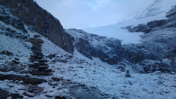 Am Samstag Aufstieg zur Hütte bei Schneeregen