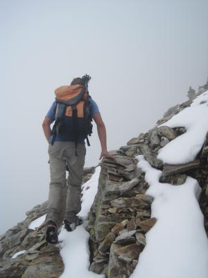 Die Wege sind vor allem im unteren, grasigen Teil nass. Im oberen eher felsigen Teil stört die Nässe kaum. Etwa ab 2700m ist noch stellenweise etwas Schnee anzutreffen, jedoch nicht viel (5-10cm). Dieser macht das ganze etwas rutschig, geht jedoch trotzdem problemlos ohne Steigeisen. Die wenigen Kletterstellen sind zudem alle schneefrei.