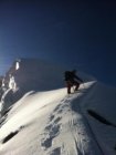 Wir waren nach 2 Wochen Schlechtwetter die ersten auf dem Scerscen. Diesen Grat und vor allem die Eisnase in glitzernder 2cm Pulverauflage spuren zu dürfen,ist einmalig. Der Preis dafür war natürlich die unglaublich mühsame Spurarbeit über das Plateau.