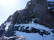Ziemlich gut - es liegt noch etwas Schnee im Grat, dieser war jedoch auch beim Abstieg gegen 10 Uhr noch gut gefroren, so dass v.a. das normalweise dort vorgefundene Schuttgelände gut zusammengekleistert war. Steigeisen sind in jedem Fall momentan empfehlenswert, auch wenn die Kletterstellen gut ausgeapert sind.