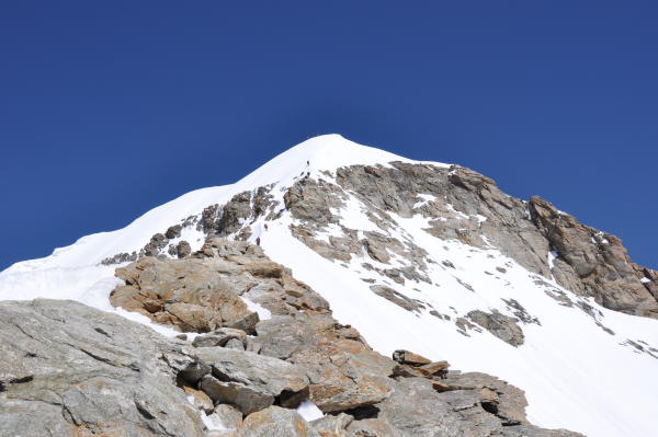 Sehr gute Verhältnisse - daher viel Verkehr auf dem Gipfelgrad.