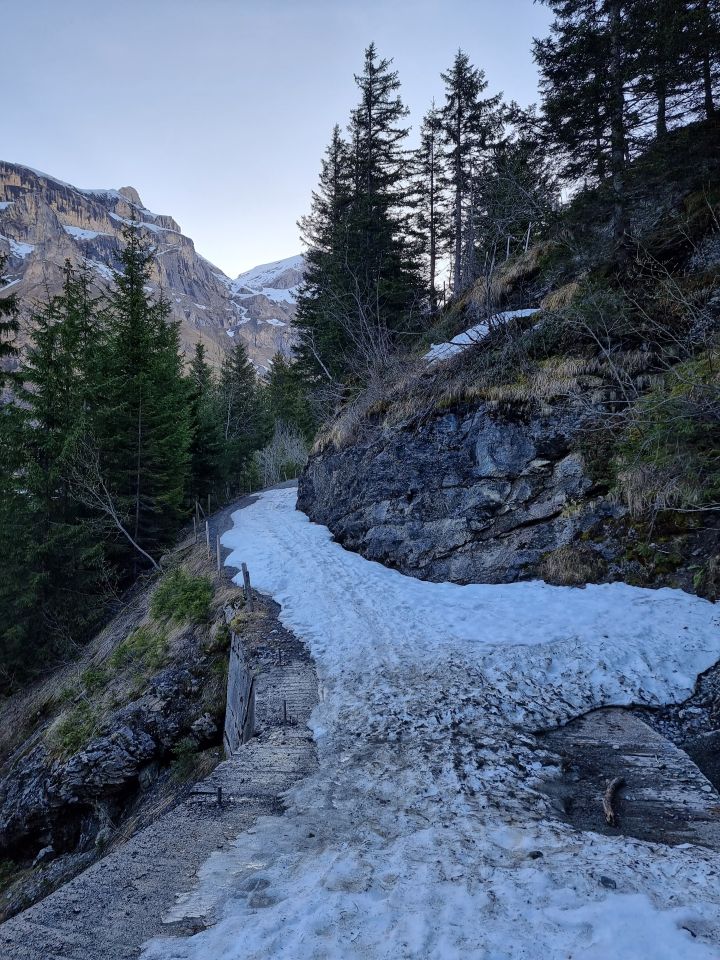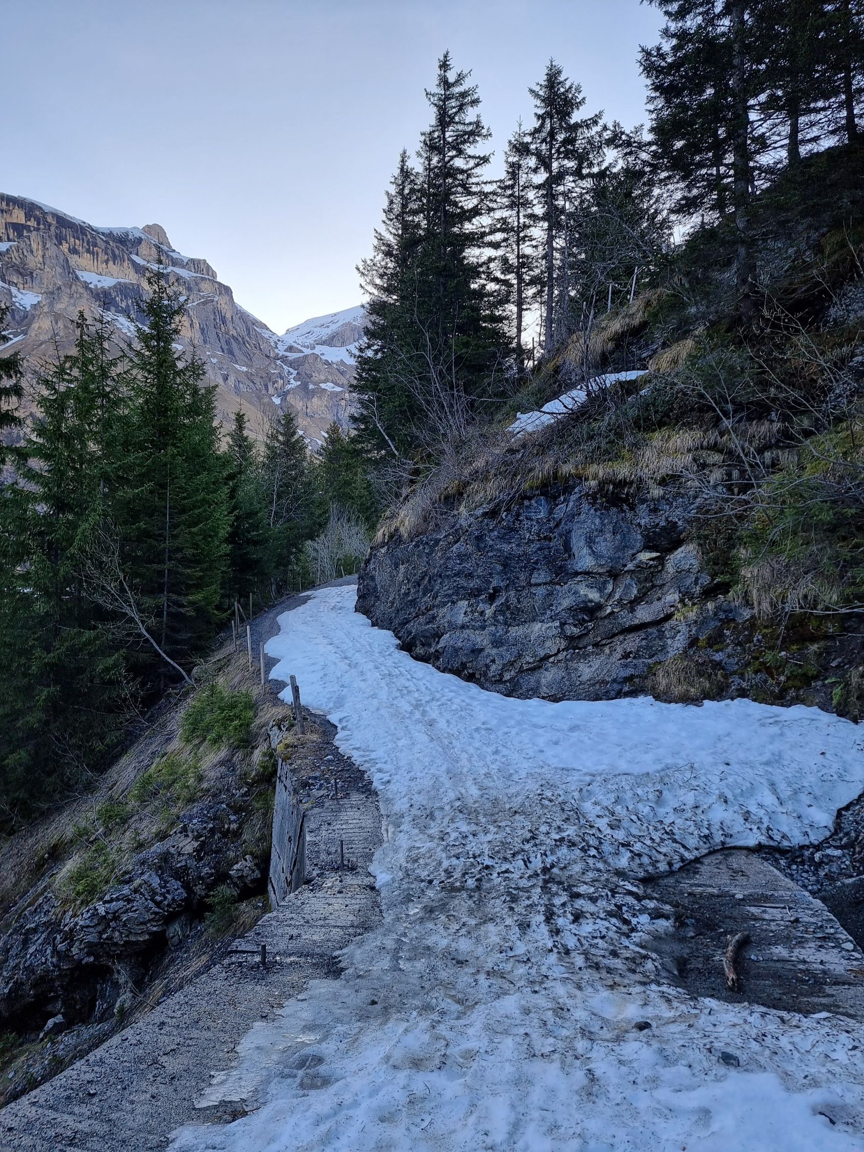 Mit dem Auto bis auf ca. 1500 m oberhalb der Griesalp (die Schranke ist noch nicht montiert). Skis aufbinden, los um 07.15 Uhr und 250 Hm zu Fuss auf der Fahrstrasse bis zum Schnee oberhalb der Unteren Bundalp. Aufstieg ziemlich rechts (von unten gesehen) im Hang auf Spur unterschiedlicher Qualität. Knapp fünf Stunden inkl. Pausen. Oben menschenleer, warm und windstill. Abfahrt orografisch links im Hang, zuerst ein schönes Stück wunderbarer Sulz, dann immer schwerer werdend bis zum Einsinken. Als Dessert wieder Skitragen bis zum Auto. Besser eine Stunde früher starten und auf kalte Nächte warten.