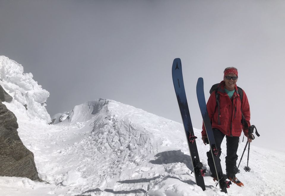 Skidepot knapp unterhalb Gipfel. Gute Fussspur die paar Meter bis Gipfel.