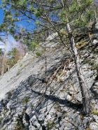 Blanche Neige Oberhalb von Sonceboz im Wald La Cote du Locle hats eine 60m lange kompakte Kalkplatte. Sie ist ausgezeichnet abgesichert, und der Abstieg erfolgt mittels Abseilen, oder Toprope.