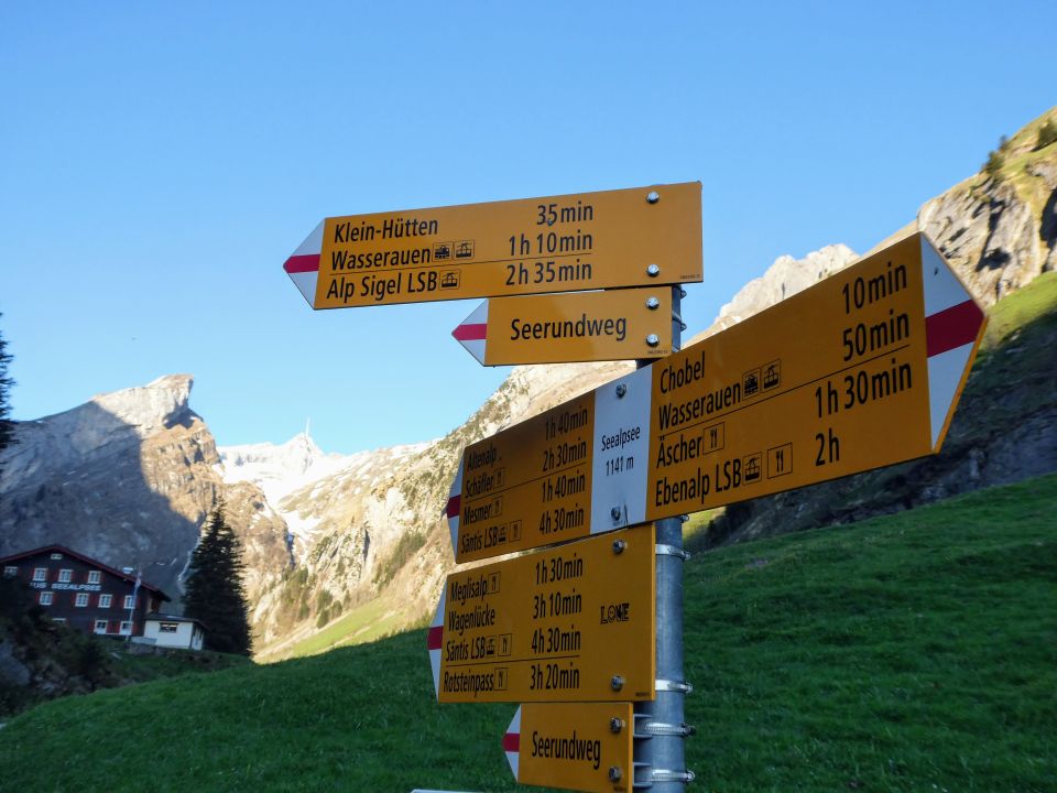 Statt direkt übers Hüttentobel aufzusteigen, machte ich heute einen Schwenker über den schönen Seealpsee und nach dem Gipfel stieg ich nicht direkt über den Kamm zur Zahmen Gocht, sondern wanderte noch zu den Hütten der Alp Sigel.