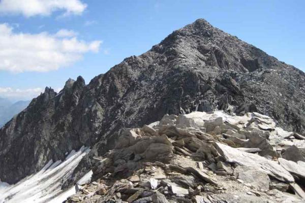 Gletscher weitgehend aper und mit Steigeisen gut begehbar, im Couloir der Nordflanke zuerst günstiger Trittfirn, dann kurz Blankeis, dann sehr instabiler Schutt; alles andere auf Wegspuren über Schutt z.T. mühsam aber problemlos.