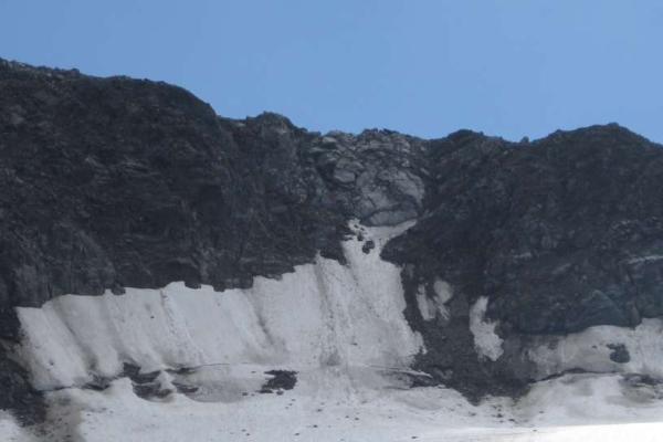Gegenwärtig auf dieser Route nicht zu empfehlen; ohne gewissen Materialaufwand und entspr. Kenntnisse nicht sicher durchführbar; auch das von unten gesehen rechte Couloir, durch welches wir abgestiegen sind, weist keine wesentlich günstigeren Verhältnisse auf.