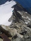 Abstieg über Basodinopass in Richtung Alp Ghigel nicht mehr zu empfehlen, in einem älteren Tourenführer ist dieser Übergang noch als möglicher Abstieg beschrieben, sehr steile mit losem Material gefüllte Rinne, kaum Sicherungsmöglichkeiten. Von der Alternative über die Kastellücke hat uns der Wirt auf der Basodinohütte bei den momentanen Verhältnissen abgeraten, einzige Möglichkeit derzeit bietet der Abstieg Richtung Alp Randinascia und wieder Aufstieg zur Bocchetta di Vallemaggia.