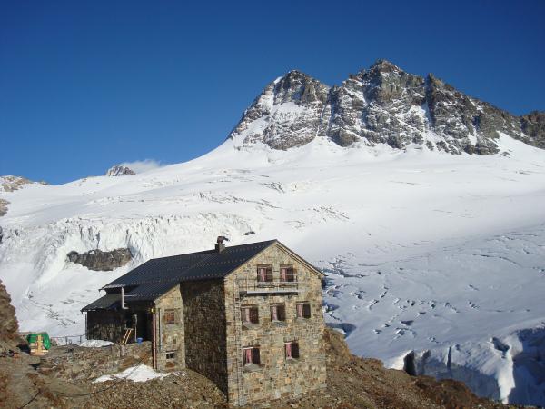 Der Tschingelgletscher ist bis zur Hütte ausgeapert und gut zu begehen.Steigeisen sind erforderlich.Die Moräne wurde gestern neu markiert.Alte Markierungen sind noch sichtbar,also:im Aufstieg den linken Markierungen folgen.Im Abstieg den rechten.