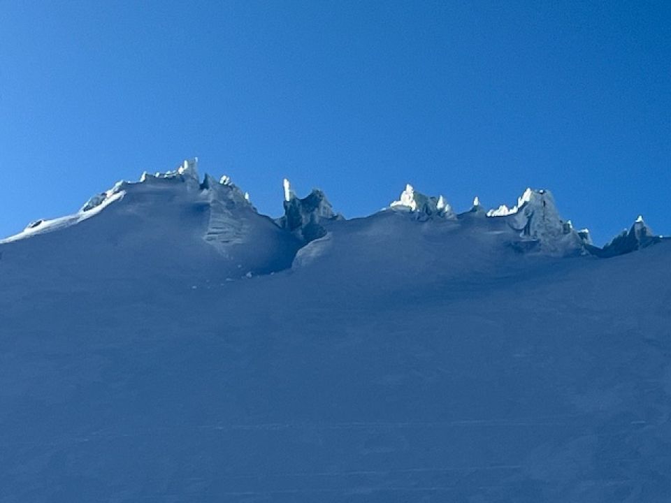 Seit Jahren mal wieder auf dem Steingletscher unterwegs. Perfekte Bedingungen, strahlend schönes Wetter, Temperatur beim Abmarsch morgens um 6 Uhr bereits 7 °C. Praktisch windstill. Im ganzen Aufstieg hartgefrorener Schnee, nach gut 4 Stunden auf dem Gwächtenhorn. Die Mehrheit zog es allerdings aufs Sustenhorn. Gletscher gut eingeschneit. Keine Spalten gesichtet.
