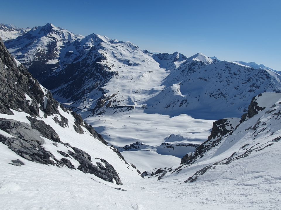 Die nördliche Rinne wies viele kleine Rillen von Schneerutschen auf, aufgrund dessen ich für die Abfahrt aktuell eher die südlichere Rinne empfehle.