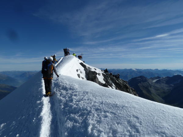 Wir machten eine Sektionstour des SAC Zindelspitz,bei herrlichem Wetter und jdealen Verhältnissen im Fels wie in Eis.Am Berg hatte es einige Gipfelstürmer,doch desto trotz kamen wir ohne Staus zügig voran.Herrliche Fernsicht auf die umliegenden Berge bis in die Schweiz belohnten uns nach dem steilen Aufstieg. Um ca.14.00 Uhr konnten wir schon das erste Bier in der Hütte geniessen. Wir wurden in der Hütte wie die Könige bedient,nachmals vielen Dank an die sehr freundliche Bewirtung auf 3029 m.
