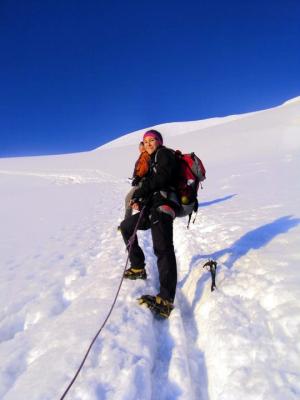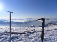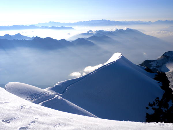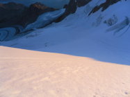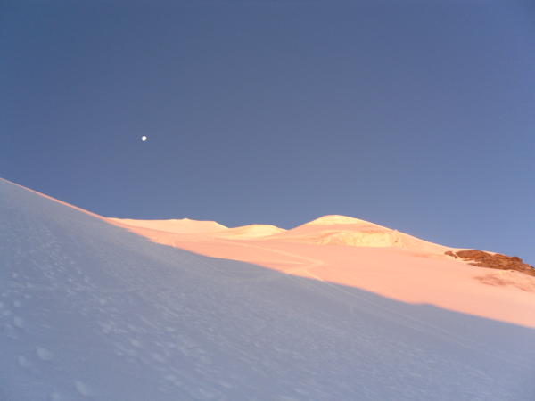 Start um 4 Uhr von der Diavolezza. 4.50 auf dem Persgletscher parat, überall noch tragender firn bis wir am steilen hang über dem schnapsboden in die sonne kamen. 7.30 uhr ost gipfel erreicht. noch immer tragender firn. beim abstieg ca. 8.15 uhr bereits von der sonne aufgewärmt und müehsamer zu gehen, schatten-passagen noch firn!