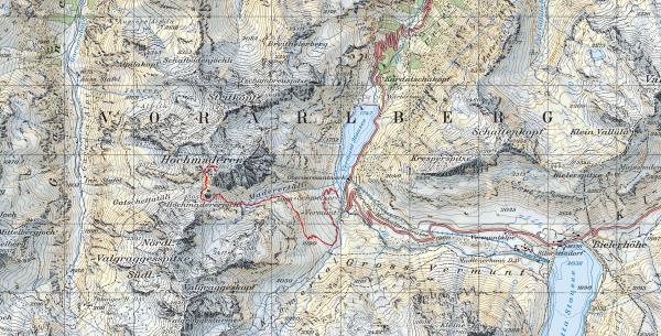 Am Hochmaderer Joch steht: "Hochmaderer ungesicherter Steig ohne Markierung"