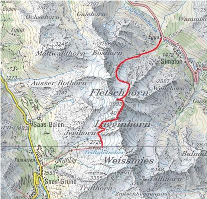Wir haben die Variante über den Breitloibgrat gewählt was eine herrliche Überschreitung vom Simplon ins Saas gibt.