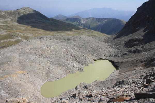 Kein Schnee, vorwiegend alpiner Rasen und darüber mehr oder weniger kompakter Bündner Gneis.