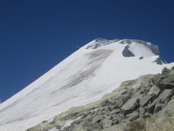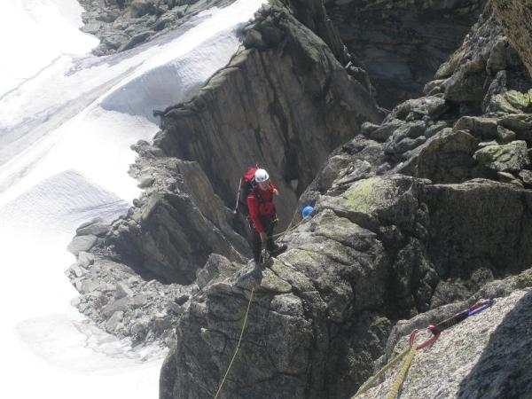 Überschreitung zum Nordgrat abgebrochen und zum Sidelengletscher abgeseilt. Von hier in ca. 4h zurück zur Albert-Heim Hütte.