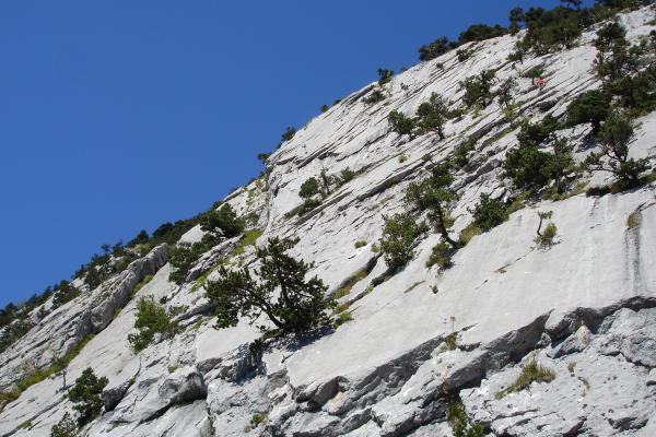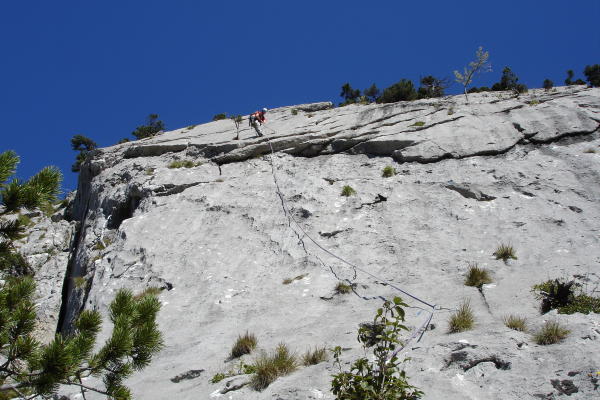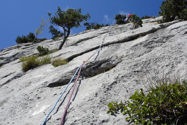 2 SL von Änzian 4c dann weiter oben wechsel in die Sohlenkitzel 1 SL 5c+ und 1 SL 6b. Anschliessend Fuss Abstieg auf Wegspuren östlich von den Routen. Dann klettern kurz in Fürlilie 5a wechsel zur O-sole-mio 1 SL 5c und 1 SL 6a+. Wer Platten kletterei mag ist in diesen Routen genau richtig. Routen gut ausgerüstet.
