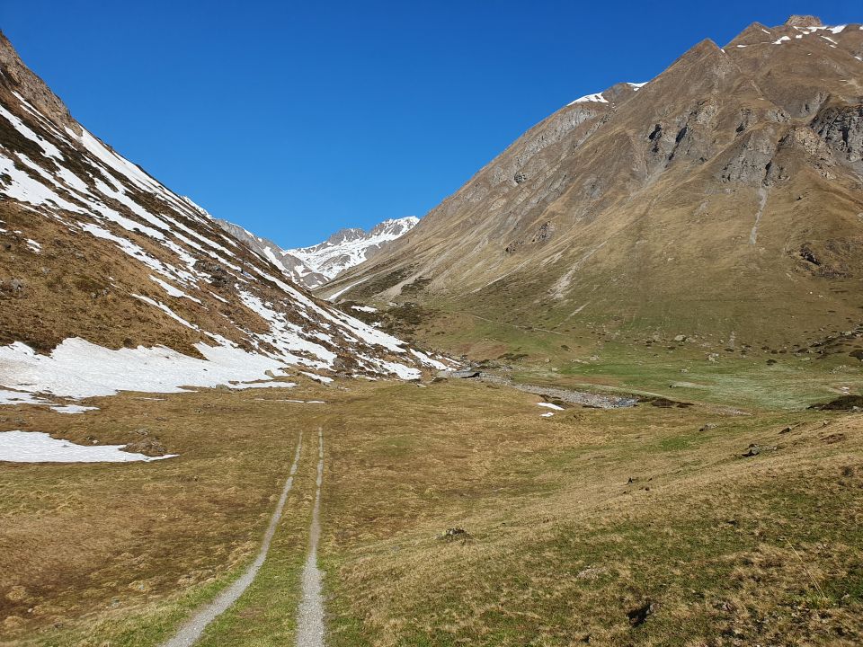 Abgesehen davon lag hier unerwartet wenig Schnee in Richtung N, wohl auch klar wegen der sonnenexponierten Lage. Aber ich erhoffte mir im Val d'Urezzas schon auf Schnee zu stossen.