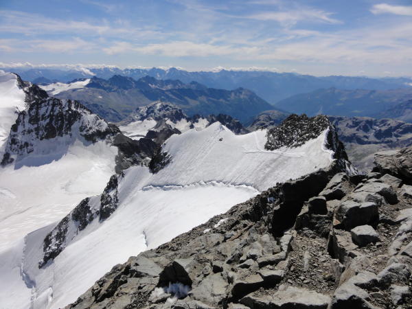 Optimaler Hochtourentag. Kühler Wind aus W/SW. Auf den windabgedrehten Seiten angenehm warm, insbesondere auf den Gipfeln :-)