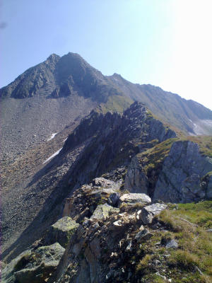 Fels nur wenig brüchig auf der Popbergschneide. Keine Altschneefelder.
