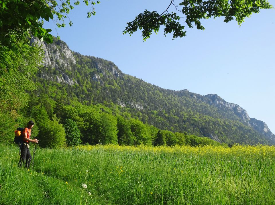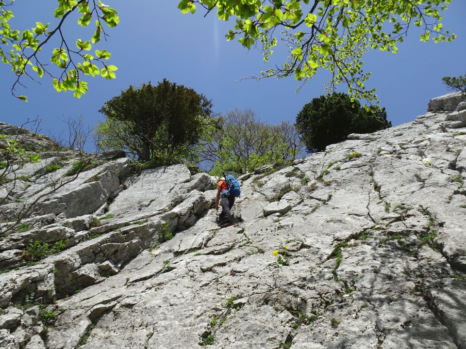 Der Wanderweg über P. 854 ist wg. Steinschlag gesperrt. Statt der ausgewiesenen Alternativroute, die erst wieder nach unten führt, kann man oben auf einem direkten Weg zum östlichen Zustieg queren (oder gleich hierhin aufsteigen).