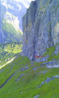 Durch die Ausrichtung nach Nordosten ist die Wand auch am späten Nachmittag angenehm zu klettern (Schattenseite). Der Fels war trocken, teilweise etwas brüchig und speckig.