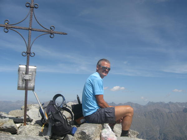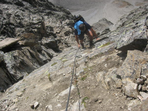 Höchster Gipfel im Geigenkamm zwischen Pitz- und Ötztal.Sehr gute trockene Verhältnisse, am Südgrat zum Gipfel kein Schneefeld mehr, wie letztes Jahr zur selben Zeit. Lange schöne Tour mit super Aussicht. Im Abstieg ist ein Helm kein zusätzlicher Balast und Stöcke von großem Vorteil. Sehr gute Küche in der Rüsselsheimer Hütte, freundlich geführt. Der Gletscher kämpft ums Überleben, er ist soweit abgeschmolzen, dass man sogar ins Innere einer Spalte gehen konnte, es ist brutal was sich da in einem Jahr tut.