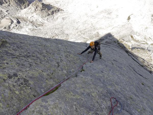 Abwechslungsreicher als vermutet! Nicht nur Reibungskram, sondern auch schöne Schuppen (5.SL!!) Genau das richtige zum "Ausklettern", wenn man am Vortag auf der "Fuori-Kante" unterwegs war. :-)