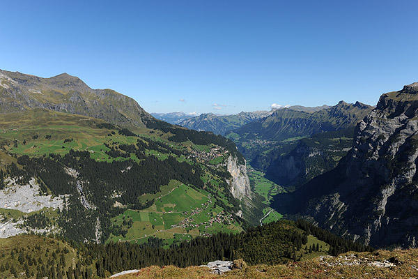 Unser Abstieg: Via Obersteinberg, Folla und Schwendiwald hinunter nach Stechelberg und der Weissen Lütschine entlang zurück zur Talstation der Schilthornbahn.
