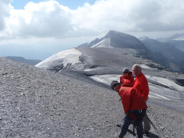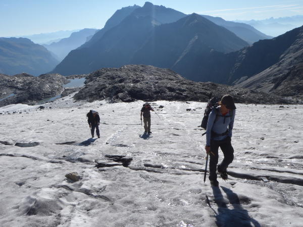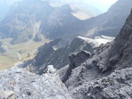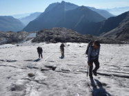 Gletscherüberquerung sicher. Pickel sinnvoll. in der Wand lockeres Gestein Aufpassen auf Steinschlag vorallem bei Wind