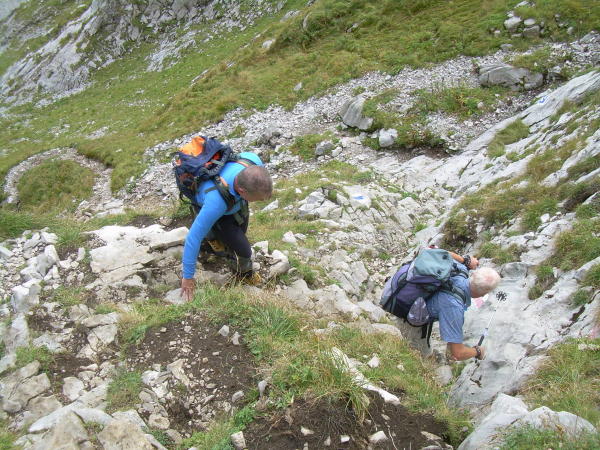 Das Mitführen eines leichten Wanderseils für Unvorhergesehenheiten kann auf einer solchen Tour nie schaden. Steinschlaghelm ebenfalls ratsam.