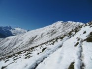 Aufstieg über Nordostgrat ist bei diesen Verhältnissen die bessere Variante, da eine apere Strasse bis auf ca. 2050 Meter führt.