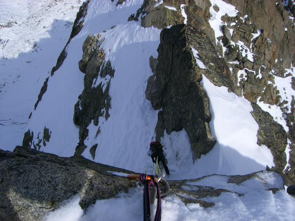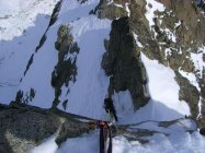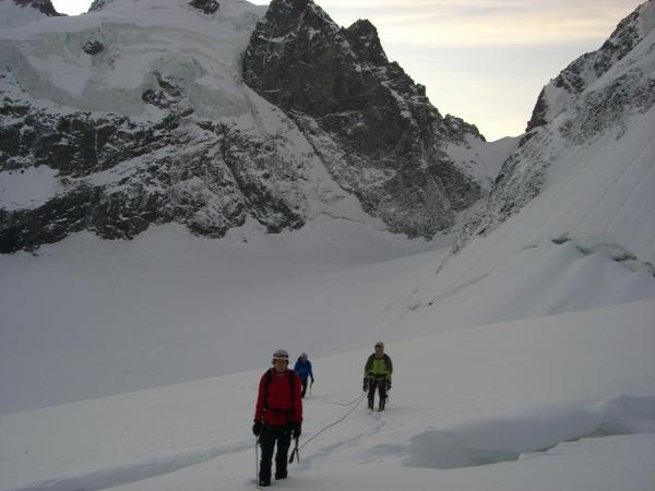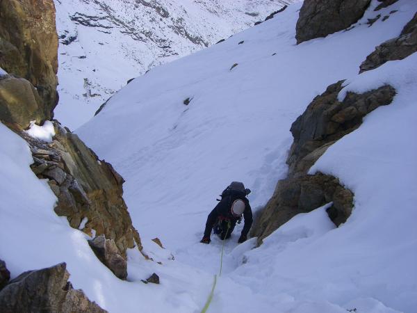 Ab Gletscherbeginn viel Schnee, anstrengend zu spuren, ist nicht gefroren. Spalten einiges offener als dies im Juli der Fall war. Grat auch verschneit, war mit Steigeisen in Summe sicherer zu klettern, Haken sichtbar u ansonsten gut machbar.