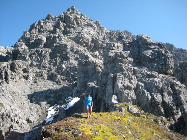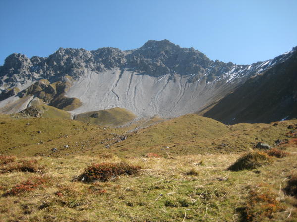Im Abstieg hat es relativ viel loses Material und eine gute Nase ist wieder einmal sehr vorteilhaft. Ein Seil bringt nicht viel.