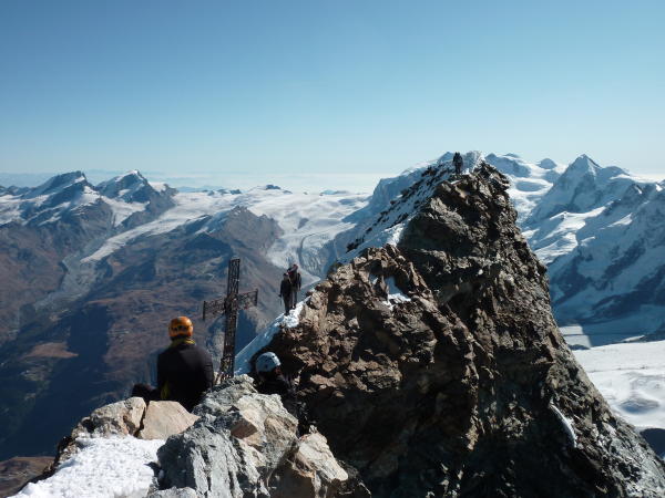 Aufstieg bis Italienergipfel trocken und ohne Steigeisen geklettert. Hörnligrat bis ca. 4100m mit Steigeisen, dann trocken. 5 Seilschaften im Aufstieg vom Rif. Carrel - einige vom Hörnlirat her aber nie störend / Wartezeiten!