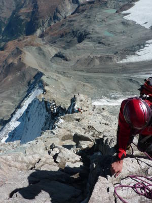 Einfach perfekte Verhältnisse! :-)Sind am Tag1 von Schwarzsee über Furggjoch bis oberhalb Rif. Duca d'Abruzzi - mässig lohnende Gerölltour, aber mit eindrücklichen Blicken auf Hörnligrat und die Ostwand! Für Fixseile und Eisenkabelstrecken lohnt sich eine Mammut-Schlinge ("Via Ferrata"-mässig gesichert...)