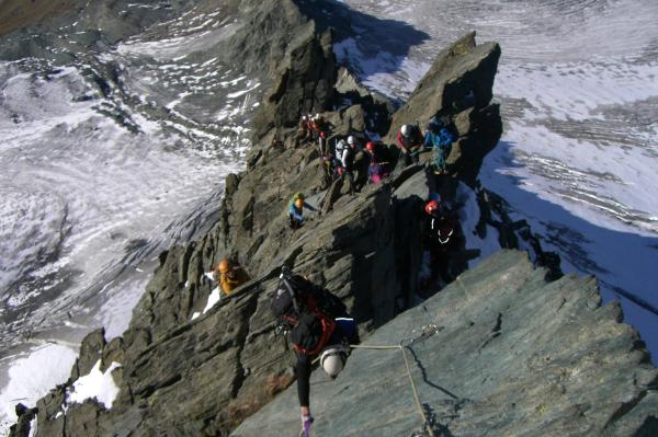 Stüdlgrat im oberen Bereich schneefrei, auf der Schattenseite (westlich) einige vereiste Stellen, stellen aber kein Problem dar. Mittlerer Satz Friends ist hilfreich bei der Absicherung.