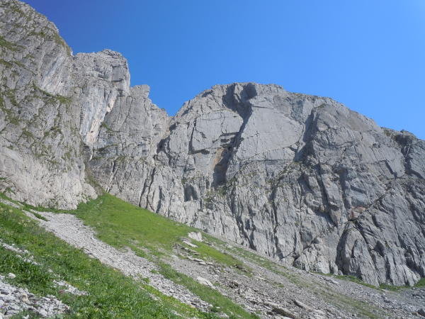 Der steilgrasige Zustieg kann jedoch heikel bleiben.